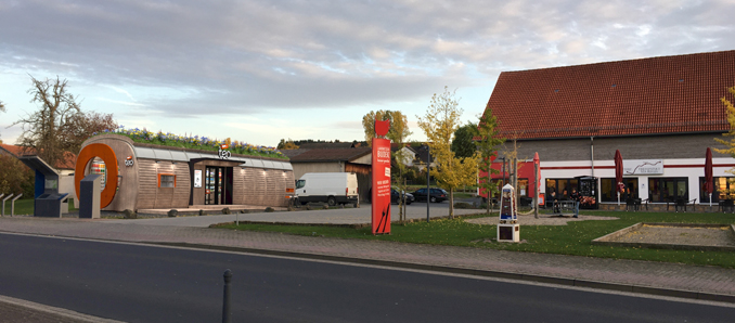 Schnell stand fest: Rasdorf das passt! Bei der Frage nach dem genauen Standort und der notwendigen Vorbereitung des Grundstücks hat die Gemeinde ihre Unterstützung zugesagt. Mit dem Treffpunkt VIA REGIA konnte schließlich der Wunschstandort realisiert und die Verhandlungen mit der Stark GbR über die Anpachtung der benötigten Fläche abgeschlossen werden. Seit Jahren arbeiten Petra und Ludwig Stark bereits intensiv am Thema Nahversorgung: Unter ihrer Regie hat sich die Nutzung ihres sehr geräumigen, zentral und verkehrstechnisch sehr günstig gelegenen Grundstücks in dieser Zeit von einer landwirtschaftlichen hin zu einer überwiegend gewerblichen Nutzung verlagert. So erfolgte unter anderem vor zehn Jahren der größere Umbau eines ehemaligen Stall- und Scheunengebäudes zum Treffpunkt VIA REGIA mit einem Fleischerei- und Bäckerfachgeschäft mit angegliedertem Bistro- und Cafébetrieb. Seit dieser Zeit ist die Point-Alpha-Gemeinde Rasdorf zusammen mit der Stark GbR bestrebt, vor Ort das Angebot von Lebensmitteln und von Gegenständen des täglichen Bedarfs zu vervollständigen und vorhalten zu können.