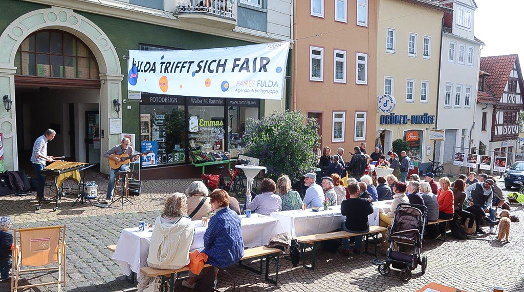 Stadtrat Stefan Grauel hatte die Gäste im Namen der Stadt Fulda begrüßt und sich bei dem Organisationsteam für das Engagement für den Fairen Handel in Fulda bedankt: „Seit vielen Jahren tragen Sie maßgeblich dazu bei, das Bewusstsein in der Bevölkerung für dieses wichtige Thema zu stärken und füllen den Titel fairtrade-Stadt Fulda mit Leben," so Grauel. Musikalisch umrahmt wurde der Nachmittag vom Duo George Wagner und Klaus Schenk. In dieser Woche warten bis zum 30. September noch weitere besondere Programmpunkte im Rahmen der „Fairen Woche 2022“. So geht es am Dienstag, 27. September, um 17.30 Uhr unter dem Motto „Fair steht Dir“ um einen Workshop zum Selbermachen von Hygiene- und Kosmetikprodukten aus fair gehandelten und ökologischen Rohstoffen. Veranstalter ist der Bund der Katholischen Jugend – Diözesanverband Fulda. Eine Anmeldung ist auch noch kurzfristig über die Homepage www.bdkj-fulda.de möglich.